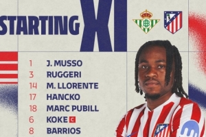 体育资讯2月6日讯 国王杯1/4决赛,马竞前往客场挑战贝蒂斯。目前,床单军团已经公布了本场比赛的首发阵容,格列兹曼领衔,阿尔瓦雷斯替补,新援卢克曼出战。