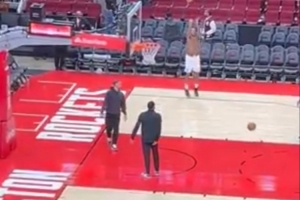 赛后,他独自在火箭主场进行加练。
