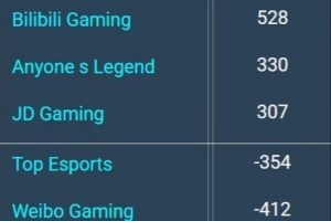 体育资讯2月13日讯 外网数据网站统计LPL第一赛段常规赛登峰组队伍前15分钟经济差:BLG第一528。