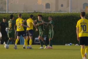体育资讯02月13日讯 季前热身赛,浙江vs俄超球队罗斯托夫,罗斯托夫连续的大动作犯规,随后99号苏莱马诺夫报复性动作,与刘浩帆发生冲突,吃到红牌,双方爆发大规模冲突,比赛在进行了大概23分钟便提前结束。