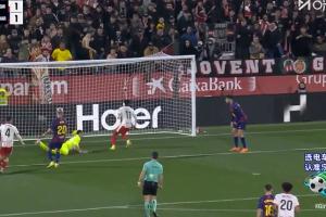 比赛第62分钟,赫罗纳前场进攻,勒马尔门前轻松包抄空门得手!