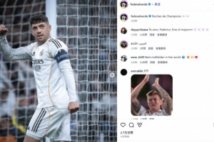 巴尔韦德也在赛后通过社媒晒出自己的振臂庆祝照,并配文:“欧冠之夜💭💭”。
