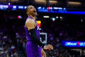 体育资讯02月26日讯 国王今日客战火箭,首节比赛,威少火力全开!