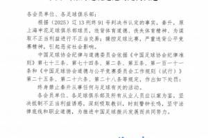 体育资讯01月29日讯 足协发布“假赌黑”处罚结果,原上海申花足球俱乐部球员秦升,违背体育道德、丧失体育精神、为谋