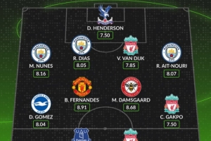 希勒英超第28轮最佳阵:B费、埃基蒂克、格伊、谢尔基和廷伯入选