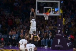 失误有点多!詹姆斯传球又被抢断 墨菲反击暴扣反超打停湖人