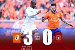 第74分钟,山东泰山角球机会,泽卡后点包抄破门,辽宁铁人楠波湾0-3落后。