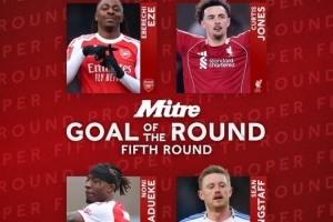 体育资讯3月10日讯 足总杯公布赛事第五轮最佳进球候选,埃泽、柯蒂斯·琼斯、马杜埃凯和肖恩·朗斯塔夫的进球入选。