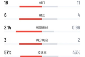 控球率57%-43%