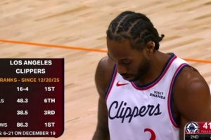 伦纳德在场快船进攻效率联盟第4&净效率第8 不在场则是第28&第26