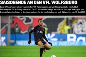 体育资讯2月3日讯 勒沃库森宣布法国U21国脚贝洛西安租借至沃尔夫斯堡。